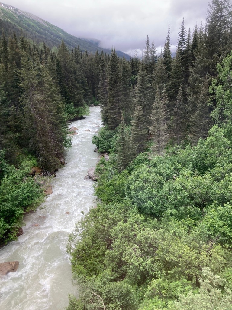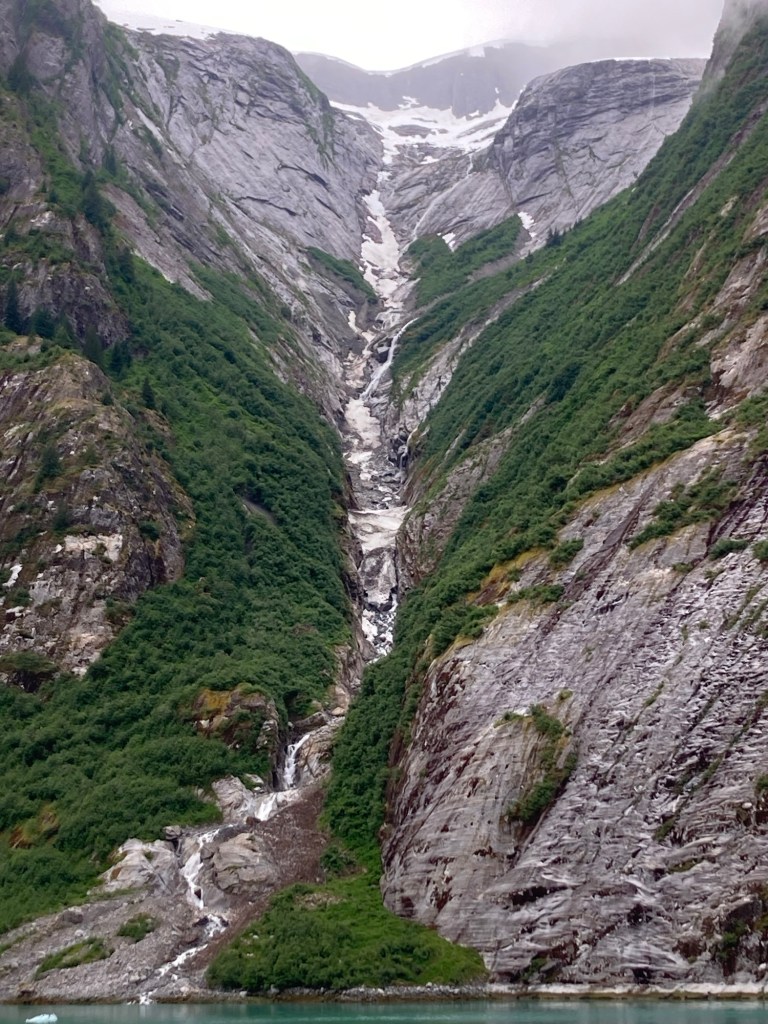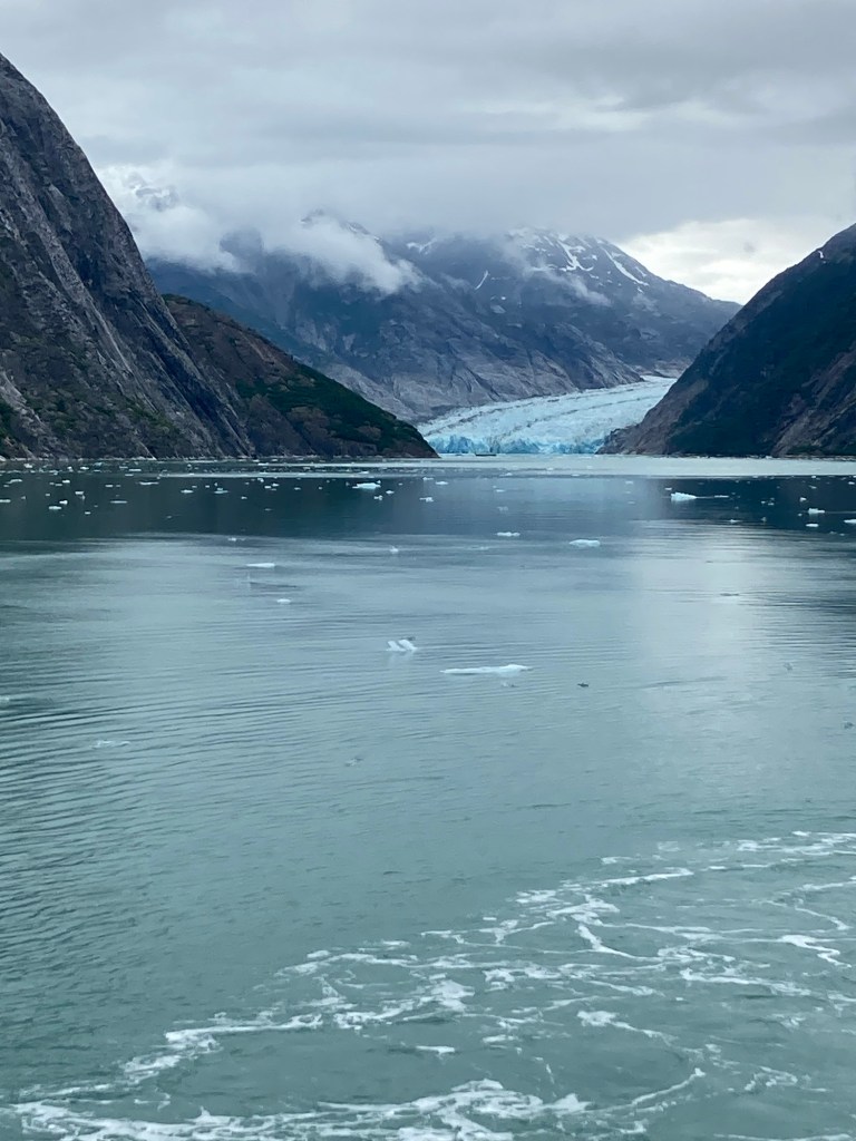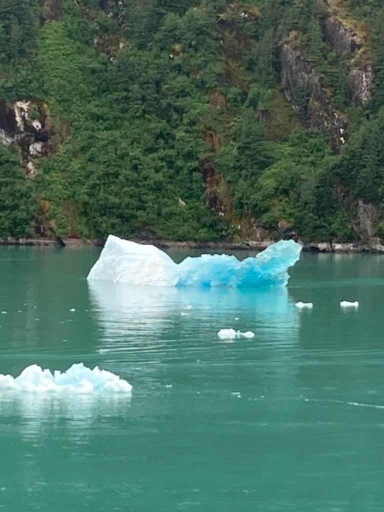 This scene resonated the most with me—Nature at her most sublime. The turquoise water is a result of the glacial ice—we were told the ice beneath the surface is actually blue, on account of the light bending and the spectrum. I was moved to sing to her—the glacier. O Lay Down Your Burden. I was alone (or thought I was) aft—in the rear of the immense ship. Most guests were on deck to witness this wonder.